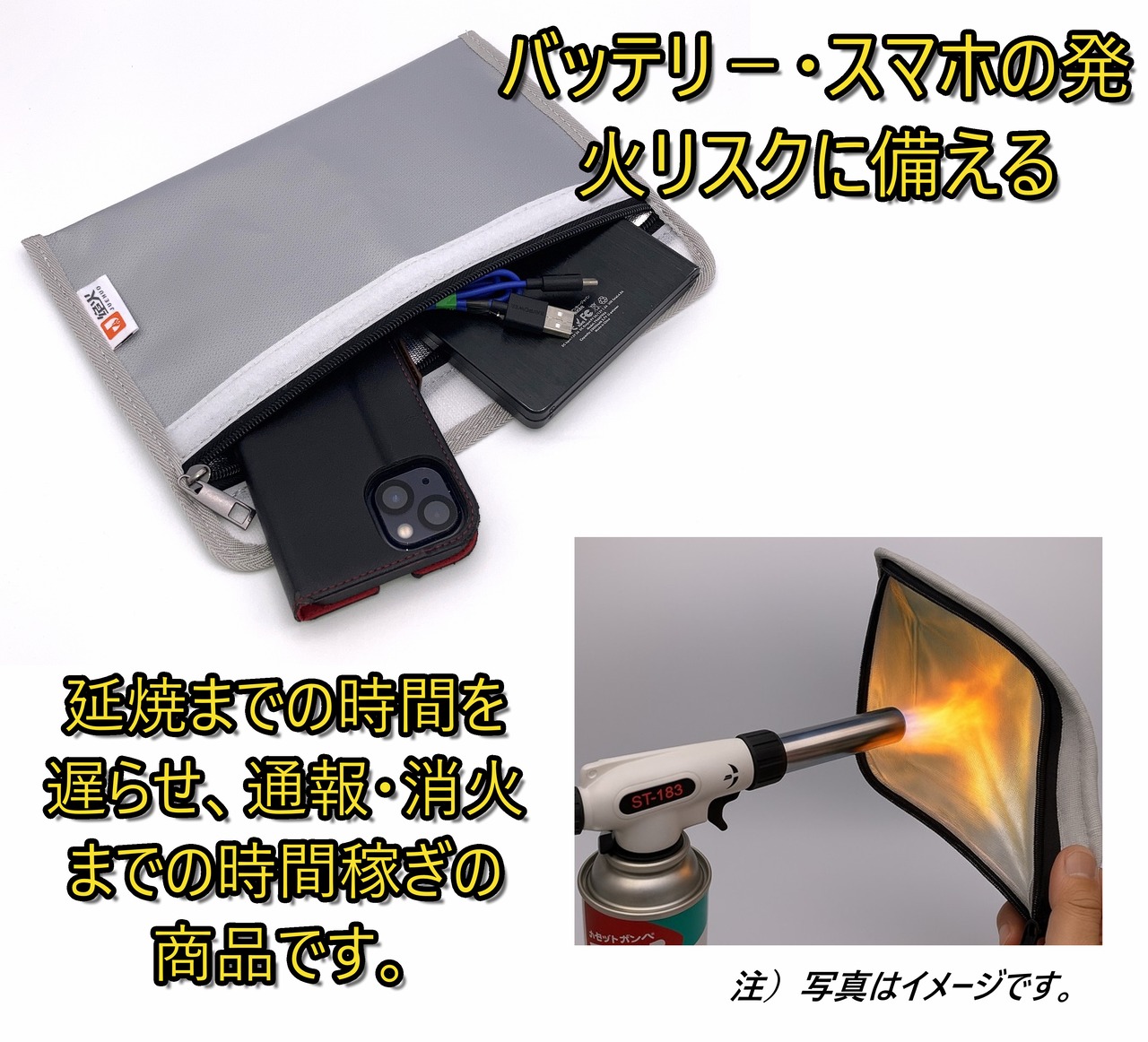 バッテリー セーフティーバッグ 防火防爆収納バッグ 耐火耐熱セーフティポーチ 防潮・防爆ケース モバイルバッテリー 事故防止日本語ガイド付 重要書類 電子機器収納用