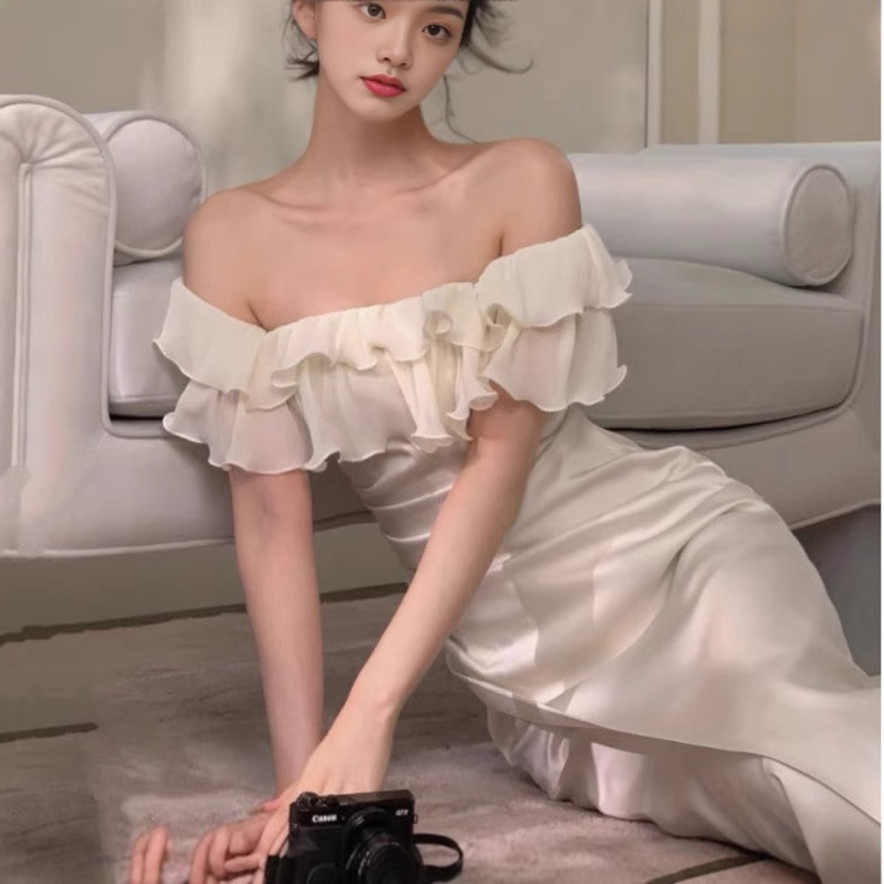 イブニングドレス パーティードレス ロングドレス ウェディングドレス フィッシュテールパーティードレス ピュアラスト サテンフィッシュテールドレス ワンスカートマルチウェア ハイエンドイブニング ロングドレス