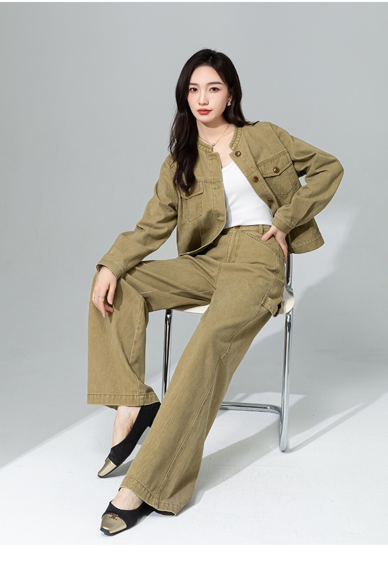 ✅ 軽やかな着心地のデニムジャケットセットアップ: