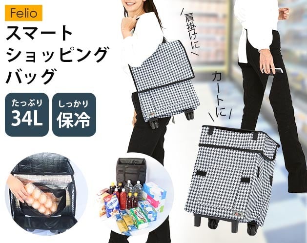 *大容量なのにコンパクトに折り畳めるカート一体型ショッピングバッグ。